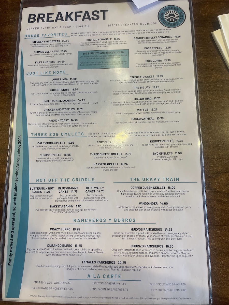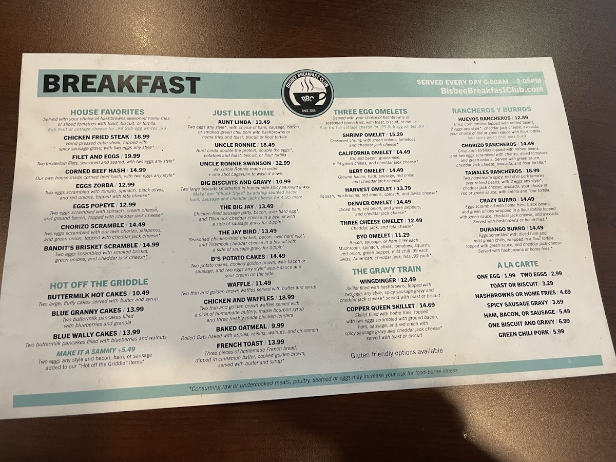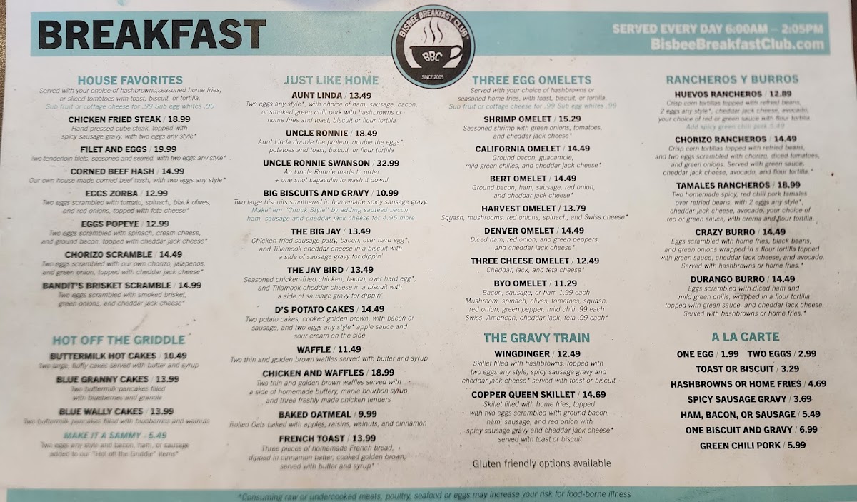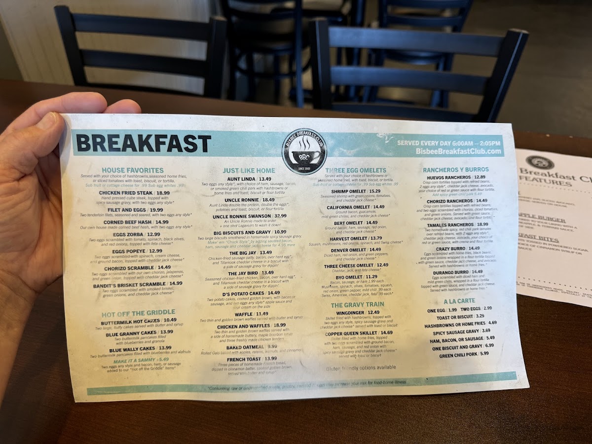 Bisbee Breakfast Club Chandler is a beloved breakfast destination located in Chandler, Arizona. Known for its vibrant atmosphere and excellent service, this diner offers a diverse menu that features standout dishes like fluffy blueberry granola pancakes and hearty omelets. Patrons rave about the freshness of the ingredients, particularly the marinated green chili pork and rich biscuits and gravy. The attentive staff, like Rachel, ensure a seamless dining experience, making every visit enjoyable. With a welcoming ambiance and ample parking, Bisbee Breakfast Club Chandler is the perfect spot for breakfast lovers seeking quality and flavor without the long wait.